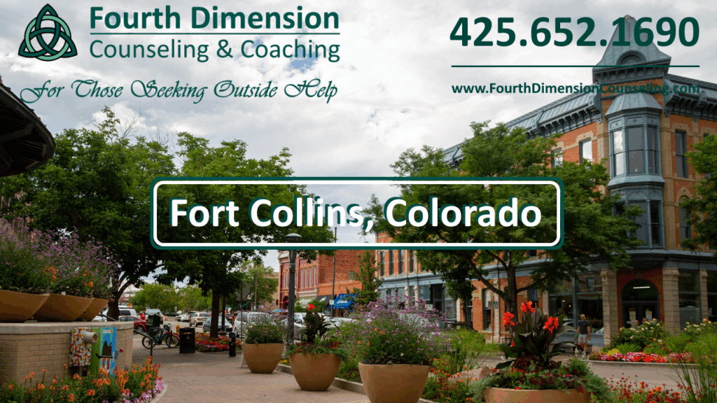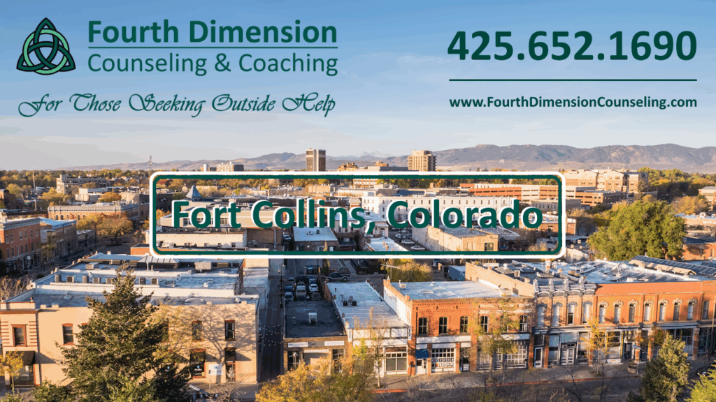 Fourth Dimension Counseling serves the Larimer County, and Front Range Colorado area, including the Fort Collins area. Currently, our therapists and counselors are seeing clients in Fort Collins, Colorado, for counseling and therapy by appointment only via secure, private, HIPAA-compliant online virtual counseling and therapy sessions. Contact Fourth Dimension Counseling if we can be of help at 425-652-1690.