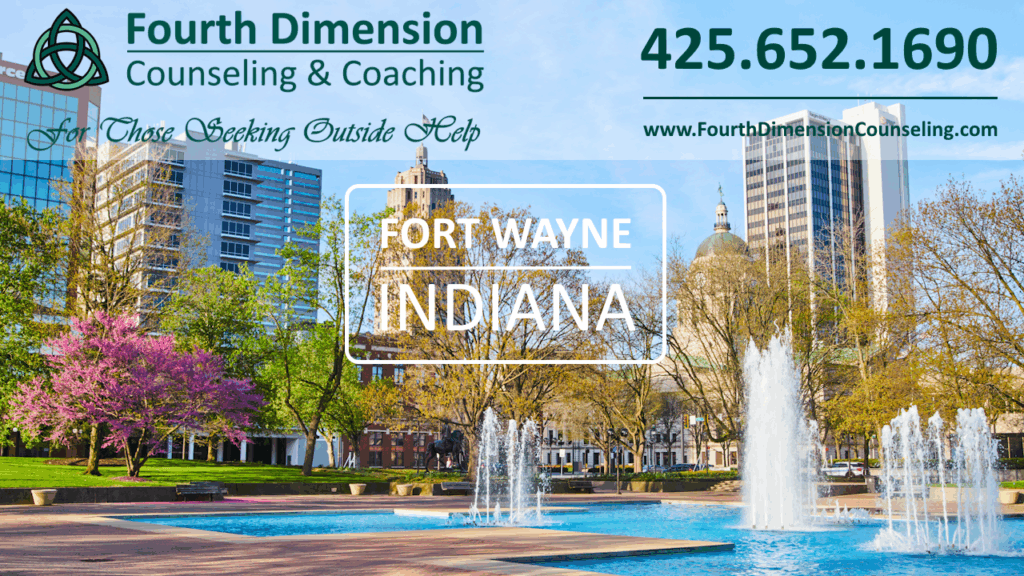 Fourth Dimension Counseling serves the Allen County, Indiana area, including Fort Wayne, IN. Currently, our therapists and counselors are seeing all Fort Wayne and Allen County, Indiana, counseling and therapy clients, by appointment only via secure, private HIPAA-compliant online virtual counseling and therapy sessions. Contact Fourth Dimension Counseling if we can be of help at 425-652-1690.