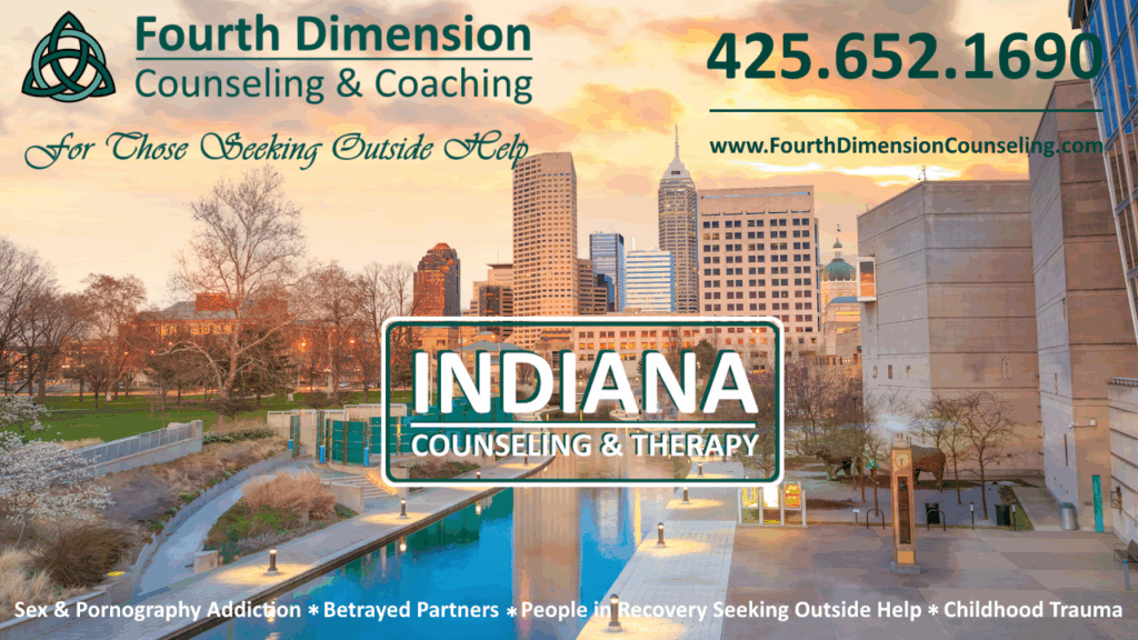 Fourth Dimension Counseling & Coaching provides online sex addiction, porn addiction, substance abuse, betrayal trauma, and betrayed partner counseling throughout 13 states including Indiana. We are licensed for counseling and therapy throughout the State of Indiana as well as Idaho, Montana, Arizona, Alaska, California, Colorado, New York, North Carolina, Florida, Ohio, and Hawaii. We provide professional online counseling, therapy, and coaching solutions for individuals, couples, groups, men, and women through a private and secure HIPAA-compliant online counseling system.